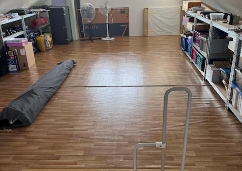 Zusätzlich gibt es noch einen großen Dachboden mit zwei Fenstern und einer Raumhöhe in der Spitze von 2,41 m², der einiges an zusätzlichem Platz bietet.