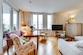 Im Flur der Wohnung wurden praktische Einbauten integriert. Der offene Wohnbereich ist ideal für eine gemütliche Sofaecke sowie einen separaten Essbereich und wurde mit hochwertigem Fischgrätparkett ausgestattet. Das elegante Design wird durch die gepflegte Markenküche ergänzt: Sie ist mit modernen Geräten ausgestattet, darunter eine besonders großzügige Induktionskochfläche.