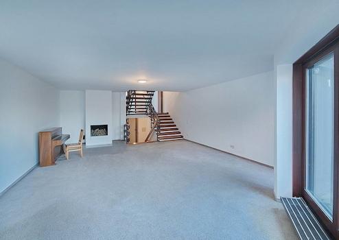 Eine Halbetage höher finden Sie das großzügige Wohnzimmer mit Kamin, Balkon und Blick in den Park der Wohnanlage. Von hier aus geht es eine weitere Halbetage höher zum Schlafzimmer und dem daneben liegenden Badezimmer.