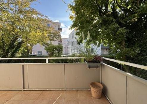 - Balkon (6m²) mit Blick in Vorgarten
