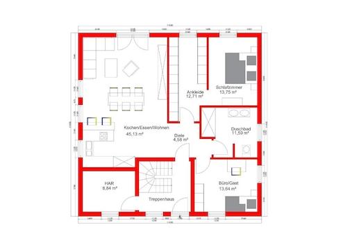 Das großzügige Haus kann entweder für die große Familie, als Zweigenerationenhaus oder als Zweifamilienhaus individuell geplant werden.