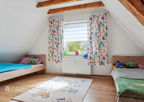 Insgesamt verfügt diese Wohnung über sechs großzügige Schlafzimmer, die ausreichend Platz für individuelle Gestaltungsmöglichkeiten bieten. Zusätzlich gibt es ein Gäste-WC im Erdgeschoss, um den Komfort Ihrer Gäste zu gewährleisten.