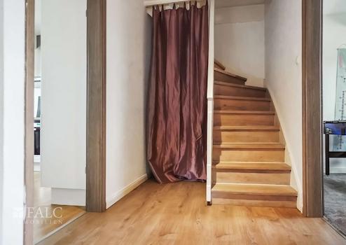 Beim Betreten des Hauses werden Sie sofort von einem beeindruckenden Treppenhaus begrüßt. Dieses führt Sie in den ersten Stock, wo Sie drei perfekt geschnittene Räume vorfinden, die Ihnen maximalen Wohnkomfort bieten. Die Küche, welche im französischen Stil gehalten ist, bietet Ihnen die Möglichkeit, alle Ihre kulinarischen Vorstellungen entfalten zu können. Hier können Sie gemütliche Stunden mit Familie und Freunden verbringen.