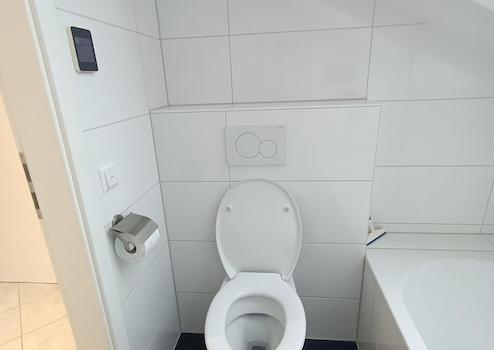 Das Tageslichtbad wurde komplett erneuert und besticht durch modernes Design, Fußbodenheizung und eine Whirlpool-Badewanne.
