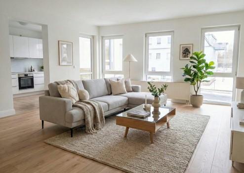 stellen Sie sich vor, Sie öffnen die Tür zu Ihrem neuen Zuhause und werden von einer Atmosphäre aus Licht, modernem Design und wohliger Wärme empfangen.