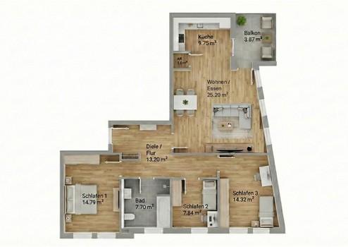 Die gezeigte Wohnung wurde mit Möbeln gestaget. Individuelle Wünsche in der Farbgestaltung der Wände können noch berücksichtigt werden.