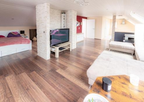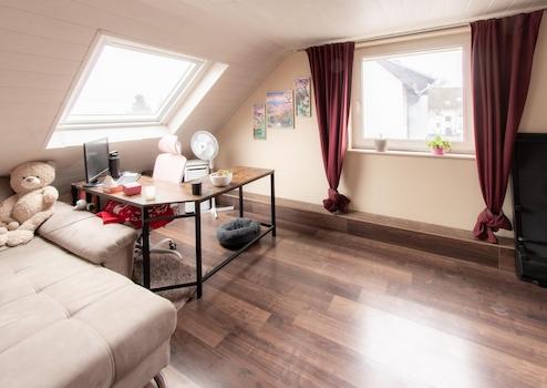 Das Dachgeschoss wurde vom Eigentümer ausgebaut und wird genutzt, zählt jedoch nicht zur ausgewiesenen Wohnfläche. Es ist mit Heizkörpern ausgestattet und verfügt über Laminatböden im Wohnbereich sowie Fliesen im Bad.