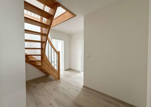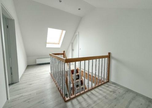 Das Tageslichtbad wird sowohl mit einer Badewanne als auch einer Dusche ausgestattet sein. Eine Echtholztreppe führt zur großzügigen Galerie, von der aus zwei weitere Zimmer zugänglich sind.