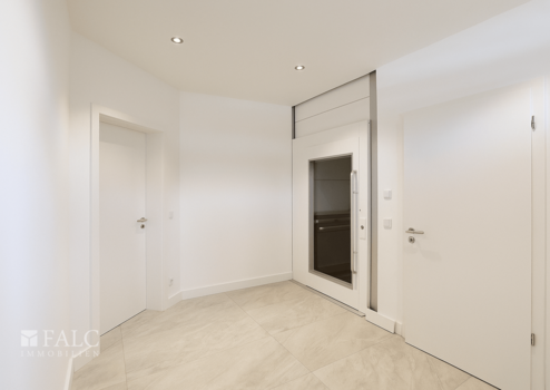 Über vier Ebenen entfaltet sich auf etwa 213 m² Wohnfläche (zzgl. ca. 40 m² Nutzfläche) ein großzügiges, durchdachtes Raumkonzept mit einer beeindruckenden Deckenhöhe von ca. 2,80 m, die in allen Wohnbereichen ein besonderes Gefühl von Weite und Eleganz schafft. Insgesamt stehen sechs Zimmer, drei luxuriöse, barrierefreie Bäder sowie ein Gäste-WC zur Verfügung. Ein Personenaufzug verbindet Unter-, Erd- und Obergeschoss und sorgt für barrierefreien Komfort bis in die Hauptebenen. Alternativ sind die Etagen über eine elegante Treppe aus Stahlbeton mit edlen Eichenholz-Trittstufen verbunden.