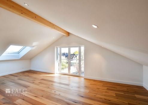 Im Obergeschoss befinden sich 2 Schlafzimmer mit Zugang zu einer ca. 18 m² großen, uneinsehbaren Dachterrasse und zwei hochwertig ausgestatteten Vollbädern. Das ausgebaute Dachgeschoss bietet weiteren Wohnraum – ideal als Home-Office oder Kinderzimmer. Im Untergeschoss befindet sich ein helles Gästezimmer mit Tageslicht und eigenem Bad – perfekt für Besucher, ein Au-pair oder eine Pflegekraft.