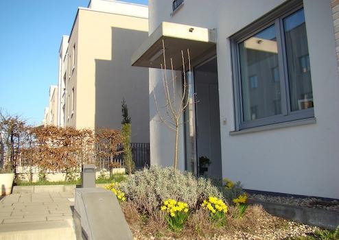 Highlight der Wohnung ist die Endhauslage, d.h. es gibt nur auf der einen Seite eine Nachbarwohnung. Die andere Seite ist durch einen, zur Wohnung gehörenden, Garten sowie einem ruhigen Durchgang zur Wasserfläche (nicht öffentlich begehbar!) zu den Nachbarhäusern getrennt. Trotz Nachbarschaft lässt sich dadurch ein Höchstmaß an Intimität genießen.