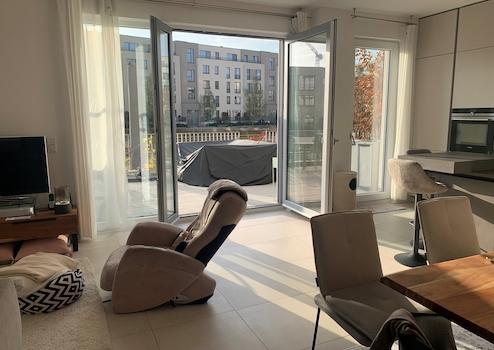 Die sonnige und ruhige 5-Zimmer-Maisonette-Wohnung befindet sich im nachhaltig gebauten Wohnquartier 52° Grad Nord. Als Haus-in-Haus Konzept bietet sie einen eigenen, separaten Eingang mit eigener Haus-Nummer, eine große Sonnenterrasse sowie zwei schöne Gartenflächen die zum sonnen, verweilen und sogar zu leichter Gartenbeschäftigung einladen. Von der Terrasse aus genießen Sie einen wunderschönen Blick auf die vorgelagerte Wasserfläche sowie auf die nebenliegende Dame. Wasserbegeisterte können sich hier mit Motorboot, SUP, Kajak, schwimmend, etc. direkt vor der Haustür austoben.