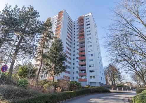 Die Wohnung befindet sich in einem gepflegten Hochhaus, das über einen Aufzug und einen Tiefgaragenstellplatz verfügt.
