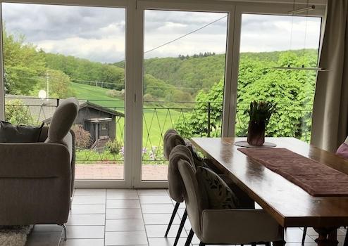 Balkon, Loggia mit Fernsicht in das grüne Gelbachtal