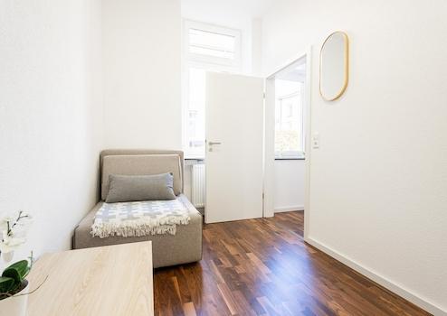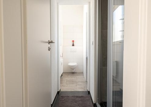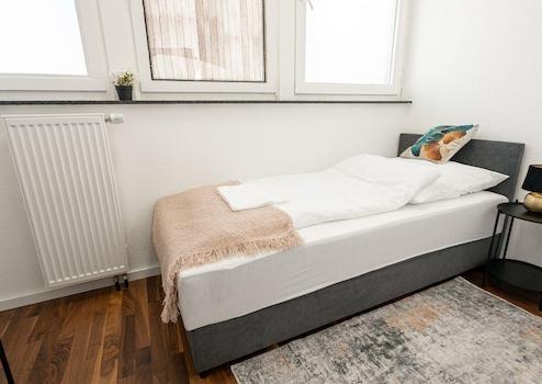 Das erste Schlafzimmer ist mit einem bequemen Doppelbett (1,60 m breit)ausgestattet. Das zweite Schlafzimmer bietet ein Einzelbett. Diese Schlafmöglichkeiten machen die Wohnung ideal für drei Personen oder ein Paar mit einem Kind. Hochwertige Matratzen sorgen für eine erholsame Nacht nach einem erlebnisreichen Tag in Heilbronn.