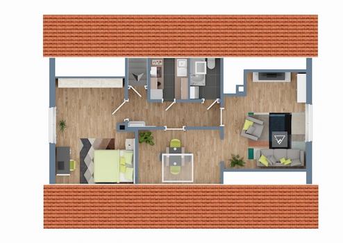 Das Dachgeschoss ist laut Angabe gut vermietet und ergänzt das Objekt um eine stabile Nutzungsperspektive.