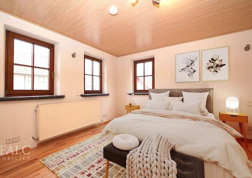 Herr Andreas Franzke von FALC Immobilie präsentiert Ihnen dieses einzigartige Fachwerkhaus aus dem Jahr 1843 vereint historischen Charme mit moderner Wohnqualität. Im Jahr 2006 wurde das Haus umfassend saniert und modernisiert, wobei großer Wert auf den Erhalt der denkmalgeschützten Bausubstanz gelegt wurde. Mit einer großzügigen Wohnfläche von ca. 292 m², verteilt auf insgesamt 9 Zimmer, bietet das Haus vielseitige Nutzungsmöglichkeiten – ob als großzügiges Einfamilienhaus oder in Form von zwei getrennten Wohneinheiten. Beide Wohnparteien verfügen über separate Eingänge. Die linke Haushälfte ist bereits vollständig modernisiert, inklusive neuer Elektrik und Leitungen, während in der rechten Wohnung lediglich kleinere Fertigstellungsarbeiten anstehen.