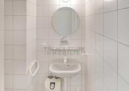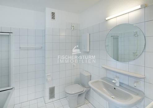 - Bad und Gäste-WC sind weiß gefliest und verfügen über graue, bzw. weiße Sanitärkeramik