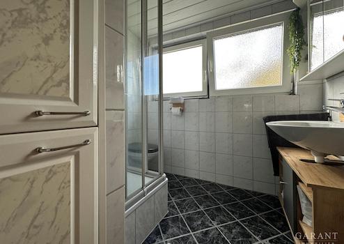Im Erdgeschoss erwartet Sie eine gemütliche Wohnküche mit direktem Zugang zum hellen Wohnzimmer und dem einladenden Wintergarten. Durch die großen Fenster fällt warmes Licht in die Räume und eröffnet den Blick in den gepflegten Garten mit einem liebevoll angelegten Freisitz - der ideale Ort, um sonnige Stunden zu genießen oder den Tag entspannt ausklingen zu lassen. Außerdem befinden sich hier ein Schlafzimmer und ein modernes Tageslichtbad mit Schiebetür, Dusche und WC.