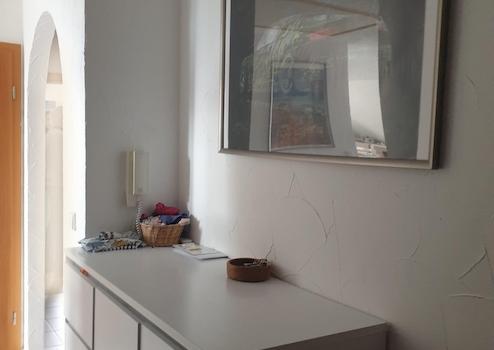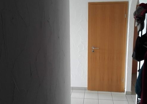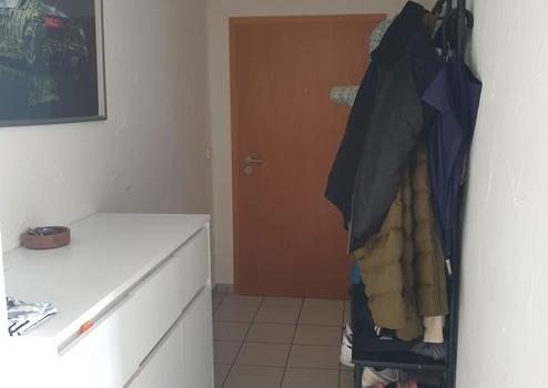 Der Eingangsbereich der angebotenen Wohnung bietet Ihnen ausreichend viel Platz zum Stellen eines Schuhschrankes, als auch für Ihre Garderobe. Der Bodenbelag ist mit hellgrauen, großen Fliesen ausgestattet. Am Ende der Diele erwartet Sie ein ca. 2m² großer Abstellraum.