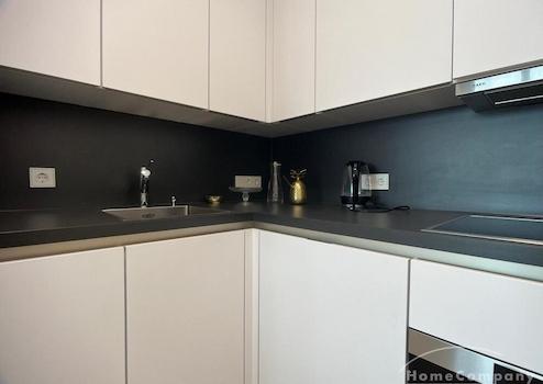 Modern und sehr wohnlich eingerichtetes Apartment. Ausstattung Wohnen: der große Wohn-Schlafbereich ist mit einem gemütlichen Einzelbett, Ess- und Couchtisch und Fernseher eingerichtet Küche: die voll ausgestattete ...