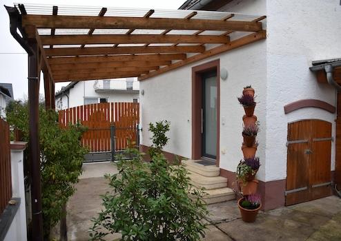 Der Zugang zum Haus erfolgt über einen ruhigen, gemeinschaftlich genutzten Hof. Zwei Stellplätze befinden sich direkt vor dem Haus. Die Lage in Heidesheim-Heidenfahrt bietet eine gute Infrastruktur, kurze Wege zu Einkaufsmöglichkeiten sowie eine sehr gute Anbindung nach Mainz und Wiesbaden.