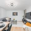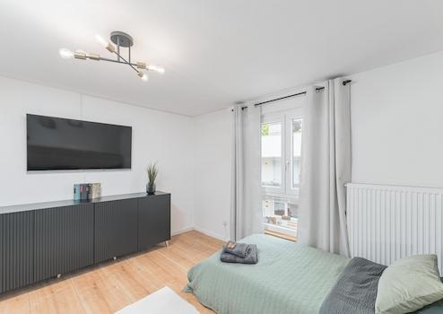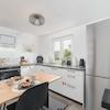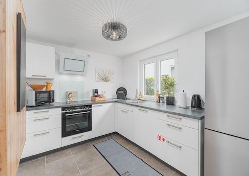 Das Erdgeschoss besticht durch ein geräumiges Wohnzimmer, das perfekt für entspannte Abende mit der Familie oder gesellige Treffen mit Freunden geeignet ist. Ein großer Esstisch lädt zu gemeinsamen Mahlzeiten ein. Die großzügige, voll ausgestattete Küche lässt keine Wünsche offen und bietet genügend Platz für kulinarische Kreationen. Ein modernes Bad mit Dusche vervollständigt das Angebot auf dieser Etage.
