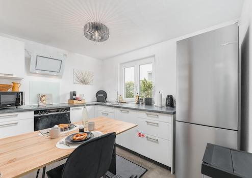 Dieses Haus ist voll möbliert und die Einrichtung kann nach Absprache auch angepasst werden, um Ihren individuellen Bedürfnissen gerecht zu werden. Auch die Küche ist bereits vollausgestattet mit allen elektrischen Geräten die Sie brauchen, sowie Töpfe, Pfannen und Geschirr. Im Keller befindet sich eine Waschmaschine