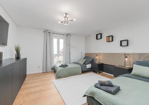 Im Obergeschoss erwarten Sie zwei gemütliche Schlafzimmer, die insgesamt mit vier Einzelbetten ausgestattet sind. Hier findet jedes Familienmitglied oder jeder Gast seinen Rückzugsort.