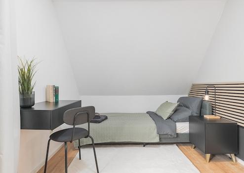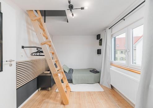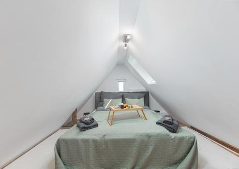 Das Dachgeschoss beherbergt ein weiteres, charmantes Schlafzimmer mit einem komfortablen Doppelbett. Hier können Sie sich nach einem langen Tag erholen und entspannen.