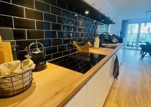 Die Wohnung ist mit einer hochwertigen Einbauküche inklusive Bosch-Elektrogeräten ausgestattet. Ein Außenstellplatz gehört zur Wohnung.