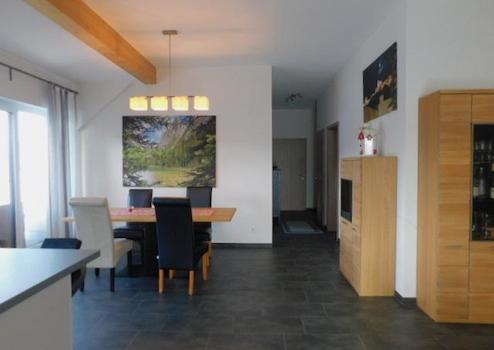 Der Wohn-Essbereich ist offen gestaltet, d.h. die Wohnlandschaft, die Essecke und die Küche gehen nahtlos ineinander über und schließen mit einer üppig dimensionierten Terrasse ab.