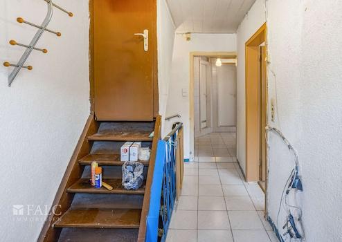 Dieses Haus aus dem Baujahr 1956 bietet rund 125 m² Wohnfläche und insgesamt 5 Zimmer, verteilt auf Erdgeschoss und Obergeschoss. Der Rundgang beginnt im Erdgeschoss im Flur, von dem aus die Räume praktisch erreichbar sind.