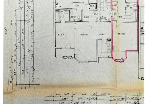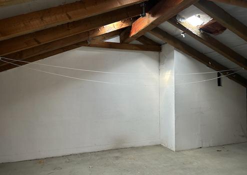 Zur Wohnung gehört kein Keller, jedoch bietet sich genügend Abstellmöglichkeit in einem ca. 30 m² großem Dachspeicher, der direkt von einem Kinder-/Arbeitszimmer zu begehen ist.