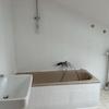 Das Bad mit Wanne sowie das Gäste-WC verfügen über neue Sanitärobjekte und helle Wand- und Bodenfliesen.