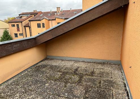 Die Dachterrasse ist mit Betonplatten ausgelegt.