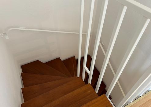 Die Innentüren sind weiß lackiert und im 2.OG mir neuen Edelstahlgriffen versehen. Alle Heizkörper sind weiß lackiert.