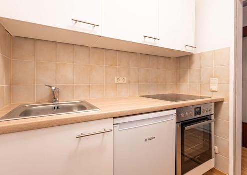 Der Wohn- und Schlafbereich ist hochwertig möbliert und optimal auf die Raumgröße abgestimmt. Die neue Einbauküche ist modern ausgestattet, verfügt über neue Elektrogeräte und ist dank separater Tür klar vom Wohnbereich abgetrennt.