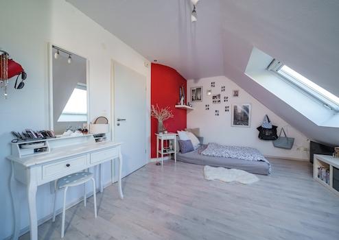 Mit insgesamt 4 bzw. 5 Schlafzimmern ist der individuellen Aufteilung keine Grenze gesetzt. Ob mit mehreren Kindern oder zwei getrennten Arbeitszimmern – hier findet man für jeden Bedarf eine optimale Lösung. Durch den erhaltenen gesonderten Eingang im 2. OG ergeben sich hierbei weitere Optionen.