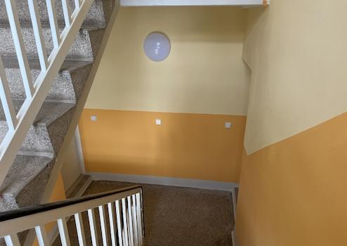 In dem aus den 70er Jahren stammenden Mehrfamilienhaus wohnen Sie gemeinsam mit elf weiteren Mietparteien. Jede Wohnung ist mit einem schönen Balkon ausgestattet. Den Mietern steht jeweils ein separater Kellerraum und ein zur gemeinschaftlichen Nutzung vorgesehener Trockenraum zur Verfügung.