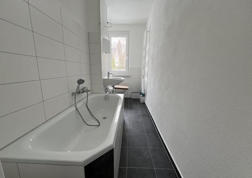 Badezimmer mit Fenster und Badewanne: Tageslicht und Entspannung sind hier garantiert.