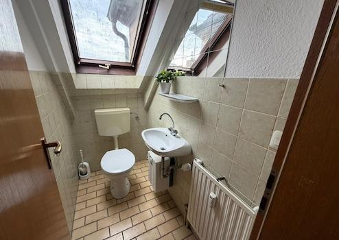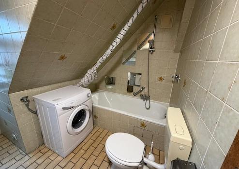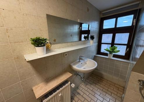 Badezimmer: Praktisch geschnittenes Bad mit allen notwendigen Anschlüssen