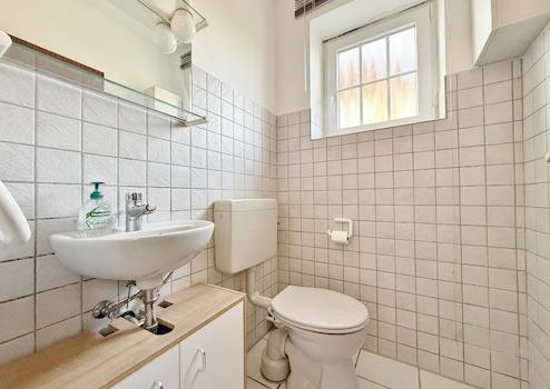 Im Erdgeschoss finden Sie ein praktisches Gäste-WC, sowie einen Abstellraum, der wertvollen Stauraum für Haushaltsgeräte, Vorräte und die Garderobe bietet.