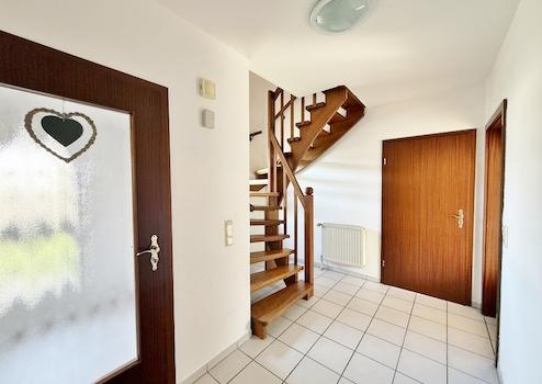 Beim Betreten des Hauses werden Sie von einem einladenden Windfang empfangen, der nahtlos in die geräumige Diele übergeht. Diese Diele ist der zentrale Knotenpunkt des Hauses und bietet Zugang zu allen wichtigen Räumen im Erdgeschoss und den Zugang zum Obergeschoss.
