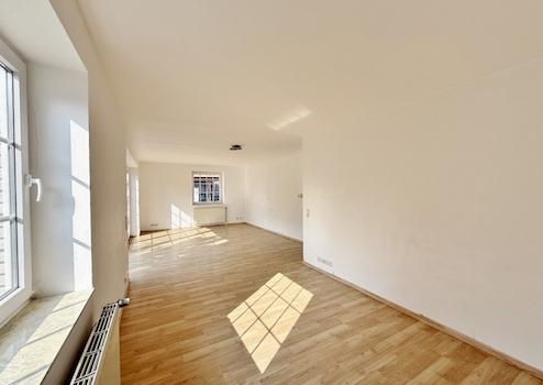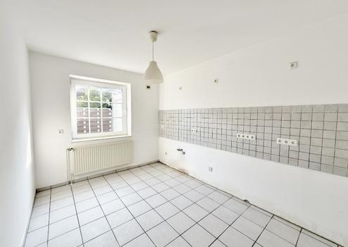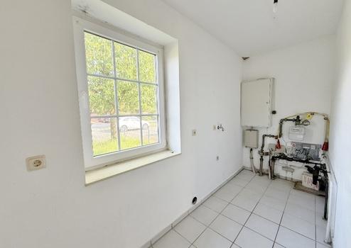 Die angrenzende Küche ist geräumig und bietet Ihnen die Möglichkeit, Ihre individuellen Gestaltungsideen zu verwirklichen. Praktisch gelegen ist der angrenzende Hauswirtschaftsraum.