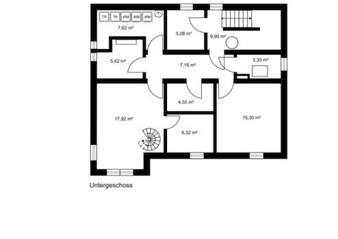 + Ein separater Waschraum im Untergeschoss mit privaten Anschlüssen, der Komfort und Privatsphäre gewährleistet.