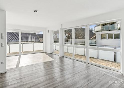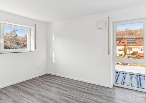 Große Fensterflächen durchfluten die Räume mit Tageslicht und schaffen ein helles, freundliches Wohngefühl. Während das Wohnzimmer mit elektrischen Jalousien ausgestattet ist, verfügen alle weiteren Zimmer über Rollläden, die für zusätzlichen Sonnen- und Sichtschutz sowie ein angenehmes Raumklima sorgen. Der offene Wohn- und Essbereich bildet das Herzstück der Wohnung und bietet mit seiner großzügigen Gestaltung ideale Voraussetzungen für eine moderne Küche mit Kochinsel - perfekt für gesellige Abende und gemeinsames Kochen. Direkt neben dem Küchenbereich befindet sich ein geräumiger Hauswirtschaftsraum mit Anschlüssen für Waschmaschine und Trockner, der nicht nur für die Haustechnik, sondern auch für Vorräte, Staubsauger, Bügelbrett & Co. ausreichend Platz bietet und den Alltag besonders komfortabel gestaltet.