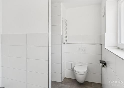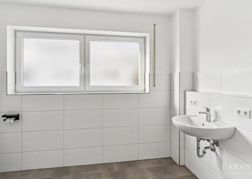 Das große Tageslichtbad überzeugt mit einer bodengleichen, begehbaren Dusche, modernem Design und viel Bewegungsfreiheit. Darüber hinaus bietet es ausreichend Platz für Badezimmermöbel und somit für alles, was im Alltag im Bad benötigt wird.