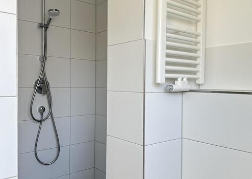 * Bad mit Fenster, begehbarer Dusche und Handtuchheizkörper