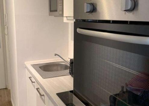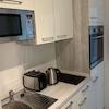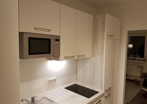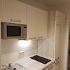 Voll ausgestattete Küche in Weiss Hochglanz mit Kühl-/Gefrierkombination, Spülmaschine, 2 Induktionskochfelder, Herd, Mikrowelle, etc